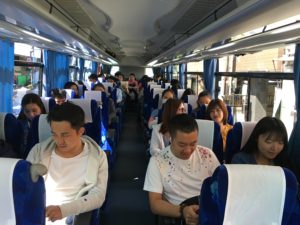 大学さんのご好意で、当校まで大型バスで迎えに来ていただきました。
